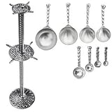 This new set from Tin Woodsman Pewter combines beauty and functionality and is sure to be treasured for many years to come. The SuperPost set includes a set of measuring cups and a set of measuring spoons along with a fabulous solid pewter storage post, providing a way to store and display both spoons and cups on one post. The cups and spoons are accurate and made to be used and the pewter display post is designed to fit comfortably beneath a cupboard in a standard kitchen. Whimsical heart design handles. Featured in Paula Deen's Holiday Baking Special Collector's Issue in Great Gift Ideas for the chef, the SuperPost set makes a fabulous gift. All Tin Woodsman Pewter is 100% lead free. Post measures 15.5 inches tall. 1 Cup measures 9.25 inches long.